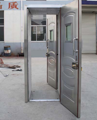 根據(jù) 銀發(fā)[1998]588號 人民銀行公安部《金融機構營業(yè)場所、金庫安全防護暫行規(guī)定》“金融機構的營業(yè)場所、柜臺通勤應安裝具有聯(lián)動互鎖裝置的兩道門。”的規(guī)定, 為滿足金融系統(tǒng)的防范要求,我公司自1999年初開始研制開發(fā)了系列防尾隨聯(lián)動互鎖安全門,該系列防尾隨聯(lián)動互鎖安全門分別應用于銀行的營業(yè)間、儲蓄所、證券交易所等部門。我公司生產(chǎn)的防尾隨聯(lián)動門嚴格按照GA576-2005《防尾隨聯(lián)動互鎖安全門通用技術條件》生產(chǎn),并通過公安部安全與警用電子產(chǎn)品質量檢測中心檢測。防尾隨聯(lián)動互鎖安全門有:帶防彈玻璃窺視窗的鋼質外門和內(nèi)門、門框封閉箱體、防盜門專用鉸鏈、聯(lián)動門專用控制器、刷卡機、聯(lián)動門專用電動鎖、多芯控制電纜等組成。
